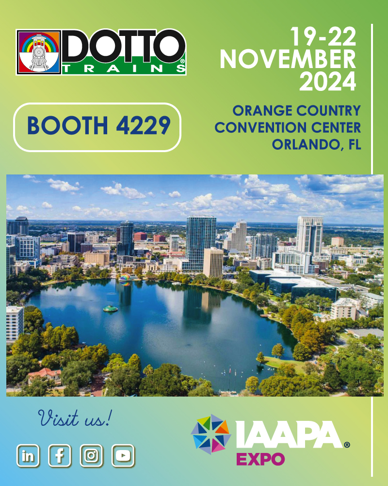 Dotto Trains look forward to see you at IAAPA EXPO FLORIDA 2024 that will be held in Orlando - Florida on November 19th -22th, 2024.