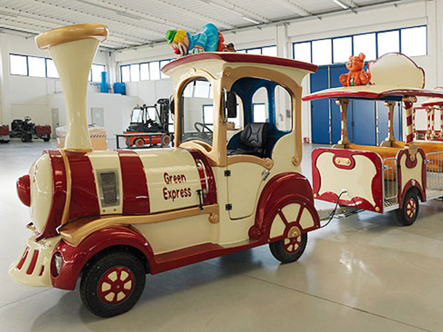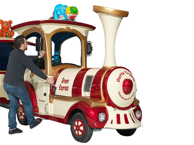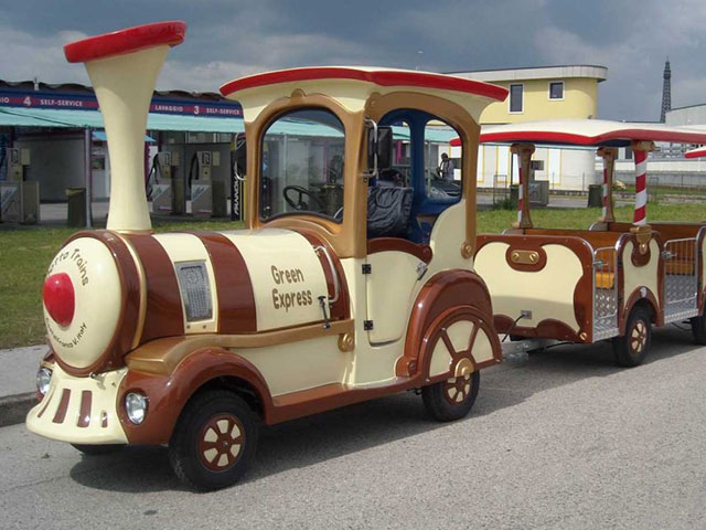 With an electric engine, it is a clean and silent choice especially suitable for covered and crowded places such as shopping outlets and malls. Compact but capacious, it has 8-seater coaches and a sound system fitted as standard equipment.